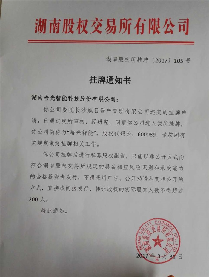 晗光智能在湖南股交所成功挂牌四板(标准版)
